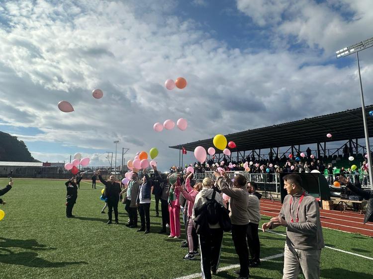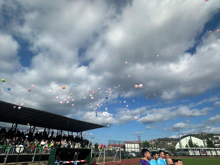 Amatör küme maçı öncesi kanseri yenen Nilda için stadyumda balon uçuruldu