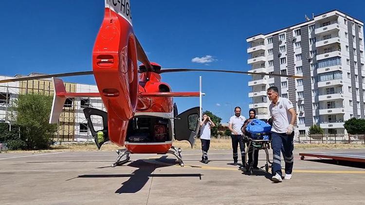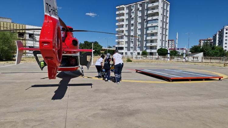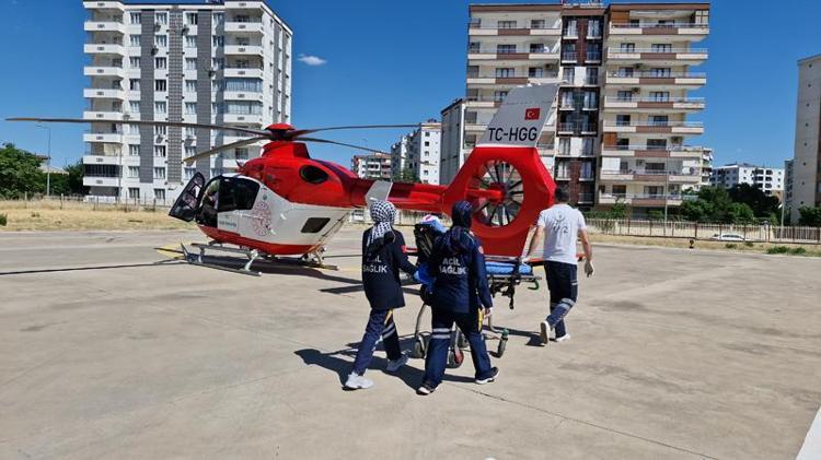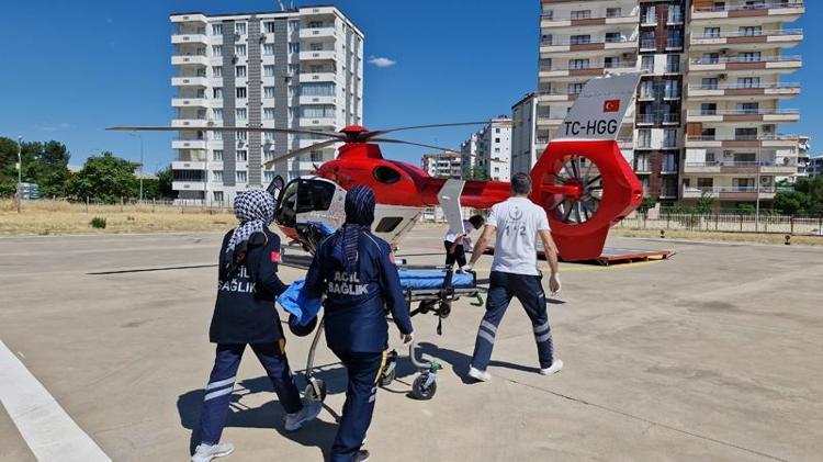 Diyarbakır'ın Kulp ilçesindeki mezrada attan düşüp başından yaralanan İlhami Olca (55), ambulans helikopterle hastaneye kaldırıldı.