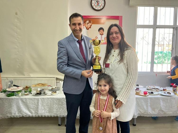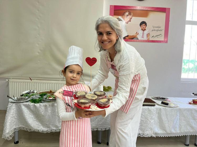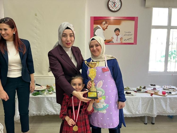 İzmir'in Gaziemir ilçesindeki Şehit Polis İbrahim Yardımcı Anaokulu'nda Yerli Malı Haftası, Aile Yılı ve israfla mücadele kapsamında düzenlenen etkinlikte, 20 çocuk ve aileleri bayat ekmeklerden hazırladıkları yiyecekleri jüri üyelerine sundu.