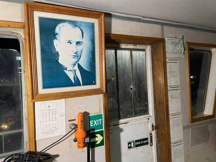 Yunan Sahil Güvenlik güçlerinin açtığı taciz ateşi sonucunda bir kurşun geminin kaptan köşküne isabet etti. Kaptan köşkünün kapısındaki camdan içeri giren kurşun geminin tavanını deldiği görüldü.