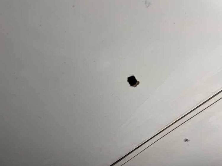 Geminin içerisindeyse Somali'de daha önceki yıllarda olduğu öne sürülen bir başka kurşun izine daha rastlandı. O kurşunun da geminin yemekhane bölümündeki cama isabet ettiği görüldü.