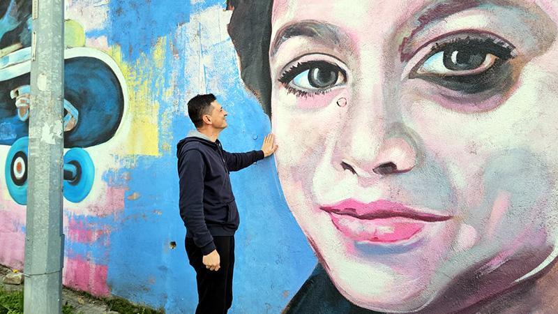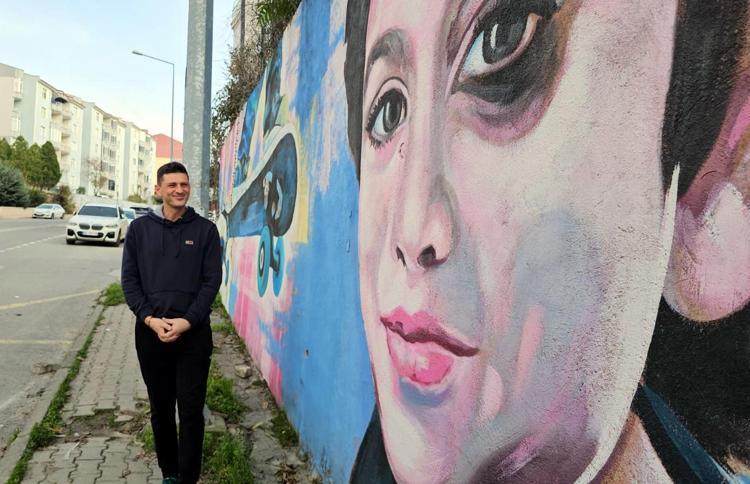Edirne’de yaşayan ressam Hatai Abdullayev, 24 Ocak’ta İstanbul Kadıköy’de bıçaklanarak öldürülen Mattia Ahmet Minguzzi’nin portresi ve kaykayını, Şükrüpaşa Mahallesi Bahriye Üçok Caddesi'ndeki duvara resmetti. Daha önce Diyarbakır’ın Bağlar ilçesinde cinayete kurban giden Narin Güran ve '2024 Olimpiyatları'na damgasını vuran milli atıcı Yusuf Dikeç gibi isimlerin portrelerini kentin duvarlarına resmeden Hatai Abdullayev’in son çalışmasını sosyal medyada gören Andrea Minguzzi, Edirne’ye geldi.