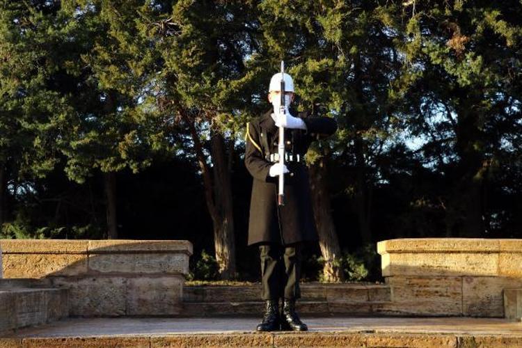 Anıtkabir'i ziyaret edenler, heykel gibi duran askerleri ilgiyle izlerken, yanlarında hatıra fotoğrafı çektiriyor. Askerlerin nöbet değişimleri de yerli ve yabancı ziyaretçilerin yoğun ilgisini görüyor.