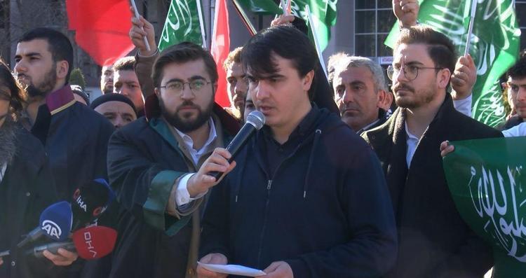 Ankara Barosu, 1 Ocak Pazartesi günü İstanbul'un Fatih ilçesinde düzenlenen 'Şehitlerimize Rahmet, Filistin'e Destek, İsrail'e Lanet' yürüyüşünde Kelime-i Tevhid bayrağı açılması sonrası, İstanbul Valisi Davut Gül, ilgili kamu görevlileri ve bayrağı açanlara yönelik önceki gün 'Anayasa'yı ihlal', 'görevi kötüye kullanma' suçlarından suç duyurusunda bulundu. Ankara Filistin Platformu üyesi yaklaşık 30 kişi, Ankara Adliyesi önünde bir araya geldi. Grup, Ankara Barosu'nun suç duyurusuna ilişkin açıklama yaptı.
