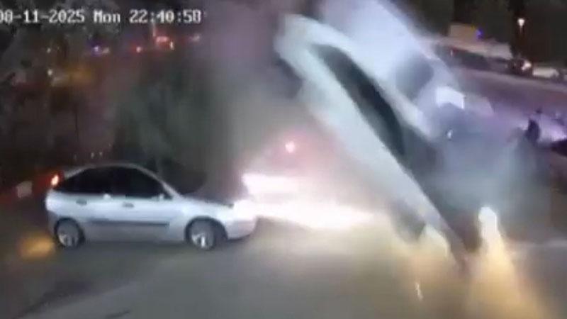 Ankara'nın Sincan ilçesinde sürücüsünün kontrolünü kaybettiği otomobilin kaldırıma çıkıp havalanarak, oto yıkama işletmesinin önündeki 3 araç ile vatandaşların üstünden uçup takla attığı kazanın güvenlik kamerası görüntüleri ortaya çıktı.
