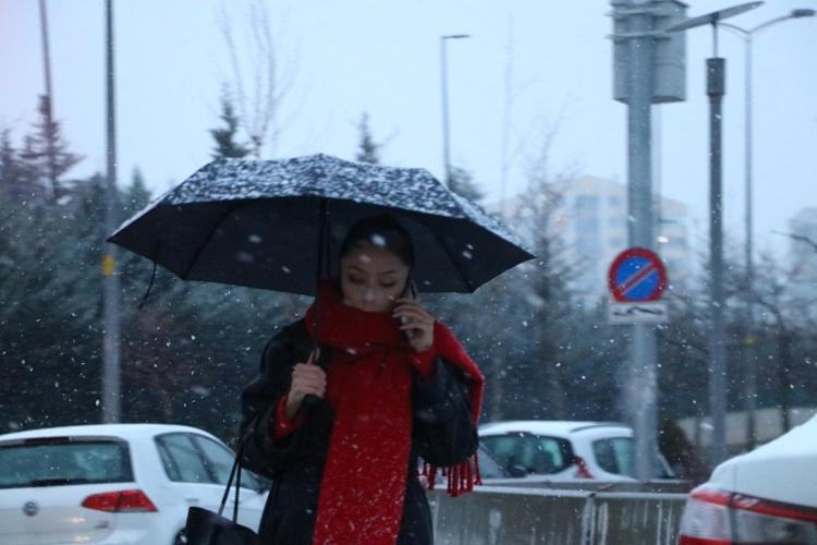 Başkent'te gün boyunca etkili olan soğuk havanın ardından akşam saatlerinde kar yağışı başladı.