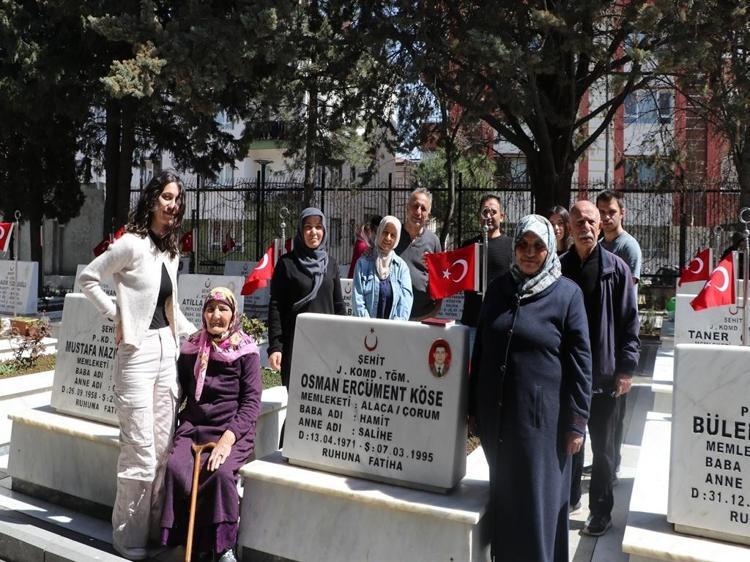 Şehitliği ziyarete gelen Kıbrıs Gazisi Edip Deniz de şehit yakınlarını gördüklerini ifade ederek, "Yavrularını, analarını, babalarını görüyoruz. Onların acılarını paylaşıyoruz. Her sene arife günü buraya ziyarete gelirim. Ölene kadar da geleceğim. Onların dualarını, Yasinlerini okudukça, ailelerini, çocuklarını görünce üzüntü geliyor, gurur geliyor. Diyorum ki; 'Çok şükür ki bu memleketin topraklarında şehitlerimiz var. Bayrağımızı sallandırıyoruz'" ifadelerini kullandı.