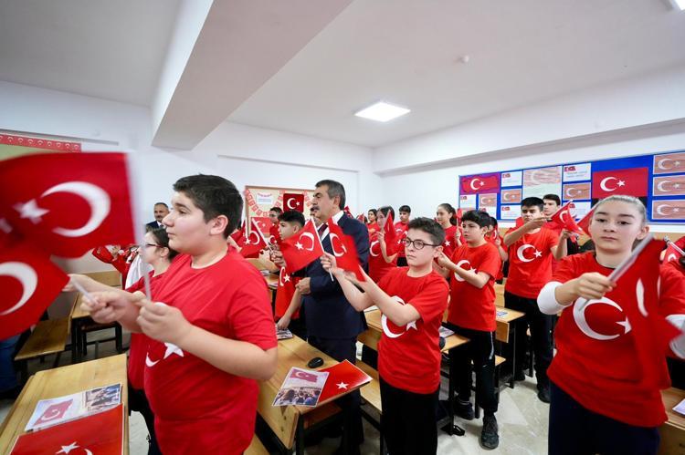 Milli Eğitim Bakanlığı'na bağlı okul öncesi, ilk ve ortaöğretim kurumlarındaki yaklaşık 18 milyon öğrenci ile 1 milyon 200 bin öğretmen, bugün dersbaşı yaptı. İlk ders, Milli Eğitim Bakanı Yusuf Tekin imzasıyla 81 ile gönderilen yazı doğrultusunda; bayrak sevgisi, birlik ve ortak aidiyet bilincini güçlendirmeye yönelik eğitim ve farkındalık çalışmaları ile başladı. Milli Eğitim Bakanı Yusuf Tekin, Ankara Valisi Vasip Şahin ile Çankaya Büyükhanlı Kardeşler Ortaokulu'nu ziyaret etti. Öğrenciler, Bakan Tekin ve Vali Şahin'i bahçede karşılayıp bayrak hediye etti. Öğrencilerle sohbet edip bayrak töreninde yer alan Bakan Tekin, ardından da 8-E sınıfının dersine katıldı. Tekin, öğrencilere bayrağın kendileri için ne ifade ettiğini sorup onlarla sohbet etti. Ardından öğrenciler, öğretmenleriyle birlikte bayrak temalı etkinlikler yaptı ve 'Çanakkale Türküsü'nü seslendirdi. Bakan Tekin, dersten sonra öğretmenler odasında eğitimcilerle sohbet etti.