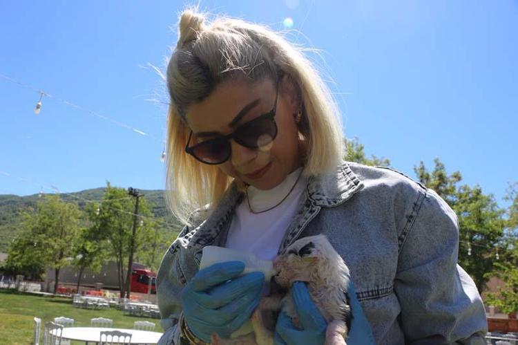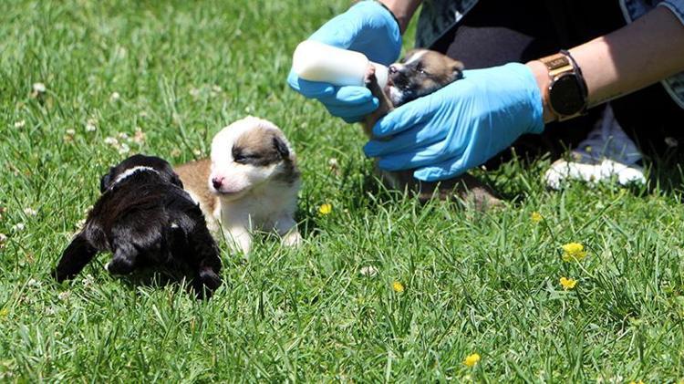 Her gün biberonla, bebek mamasıyla beslenen yavru köpekler, çay bahçesine gelen müşterilerden de yoğun ilgi gördü.