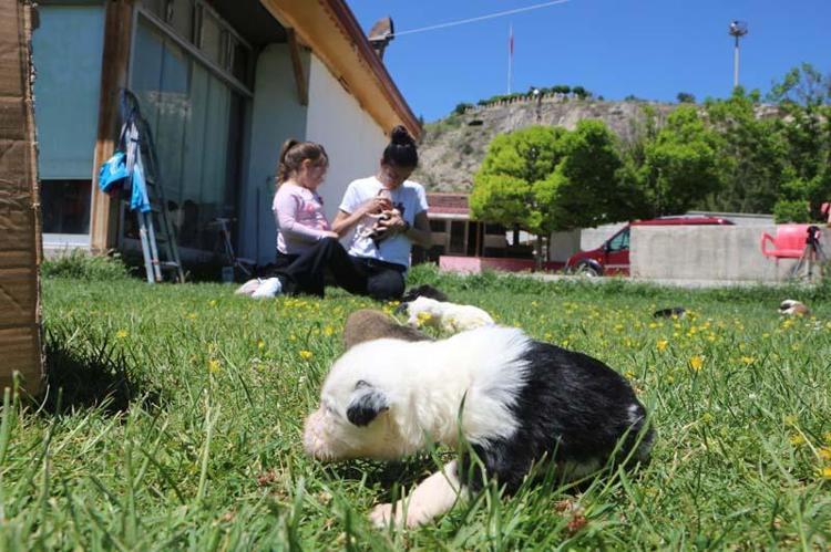 Reşadiye ilçesinde Hülya İlhan ve Selma Öztürk kardeşlerin işlettiği çay bahçesine sahipsiz Terrier cinsi bir köpek 27 Nisan'da doğum yaptı.