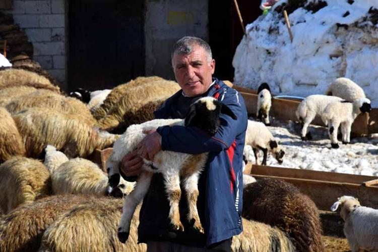 Van'ın Erciş ilçesinde hayvancılıkla uğraşan 8 çocuk babası Feyat Polat (50), 20 gün önce dünyaya gelen ve annesi doğum sonrası ölen kuzuya evinde bebek gibi bakıyor. Kış mevsimi nedeniyle 'Karbeyaz' adını verdiği kuzuyu üşümemesi için sobanın yanında yatıran Polat, kuzuyu biberonla beslediğini söyledi.