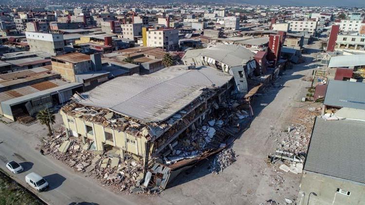 Kenti ikiye bölen Asi Nehri'nin kenarındaki binalardaki yıkım çalışmaları ile sanayi sitesi içerisinde yıkılan iş yerleri de dronla görüntülendi.