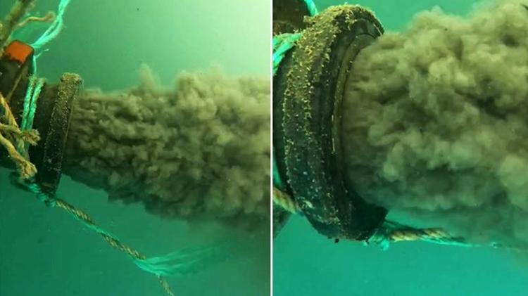 Diğer yandan, şikayete konu olan borudan yapılan deşarj işlemi su altından görüntülendi. Sahilin liman girişine yakın noktada yer alan borudan kahverengi bir sıvının denize boşaltıldığı ve bu bölgede kirlilik oluştuğu görüntüye yansıdı.