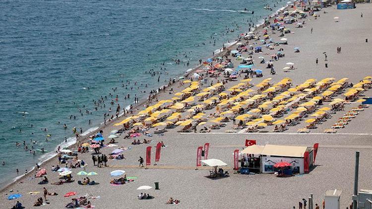 Antalya'da hissedilen sıcaklık 44 dereceyi bulunca sahiller doldu