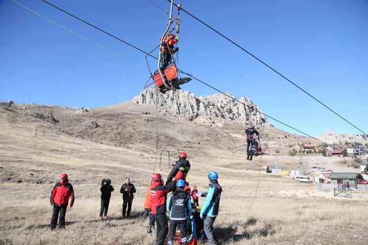 Antalya'nın Konyaaltı ilçesi Saklıkent Kayak Merkezi'nde, Jandarma Arama Kurtarma (JAK) Tim Komutanlığı koordinesinde, teleferikte mahsur kalanları kurtarma tatbikatı başarıyla tamamlandı.