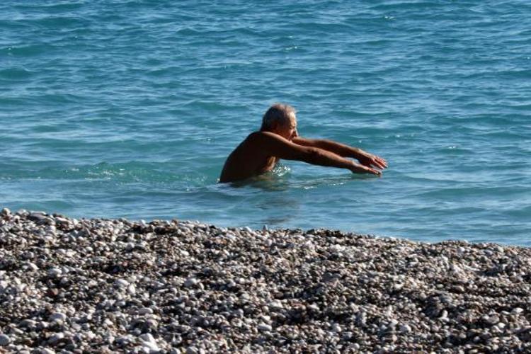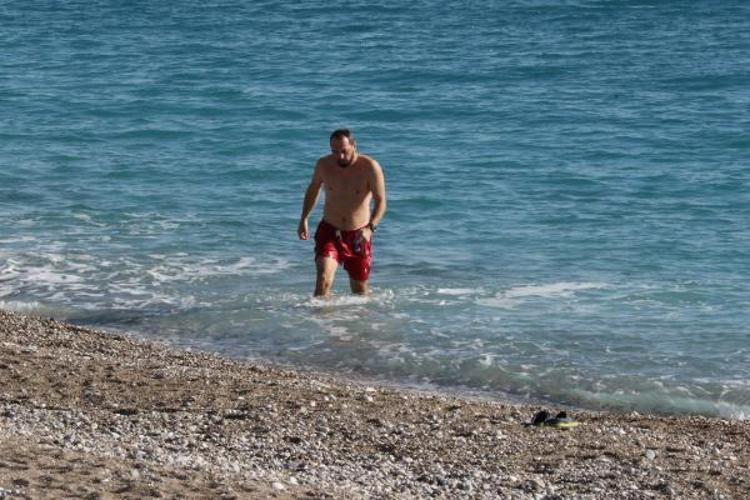 Tüm yurtta soğuk ve karlı hava etkisini gösterirken, Antalya'da ocak ayının ortasında yerli ve yabancılar denize girdi.