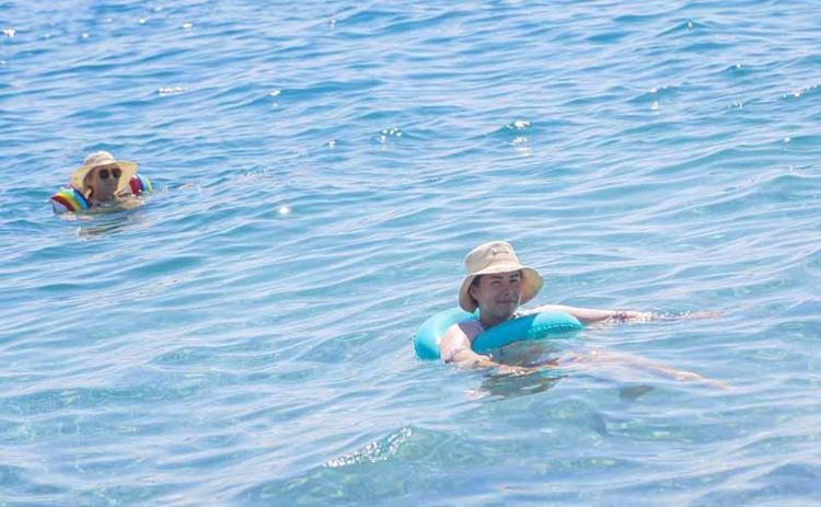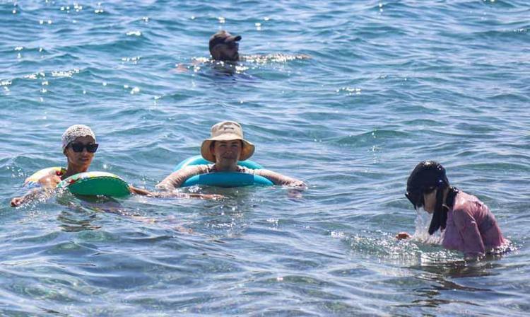 Meteoroloji verilerine göre kentte hava sıcaklığı 32, hissedilen sıcaklık 34, nem oranı yüzde 46, deniz suyu sıcaklığı ise 30 derece ölçüldü. Şezlongların dolduğu plajda bazı turistler havlularını serip, güneşlendi. Denize girenler serinlerken, gezi teknelerinden denize atlayan turistler de dikkati çekti.
