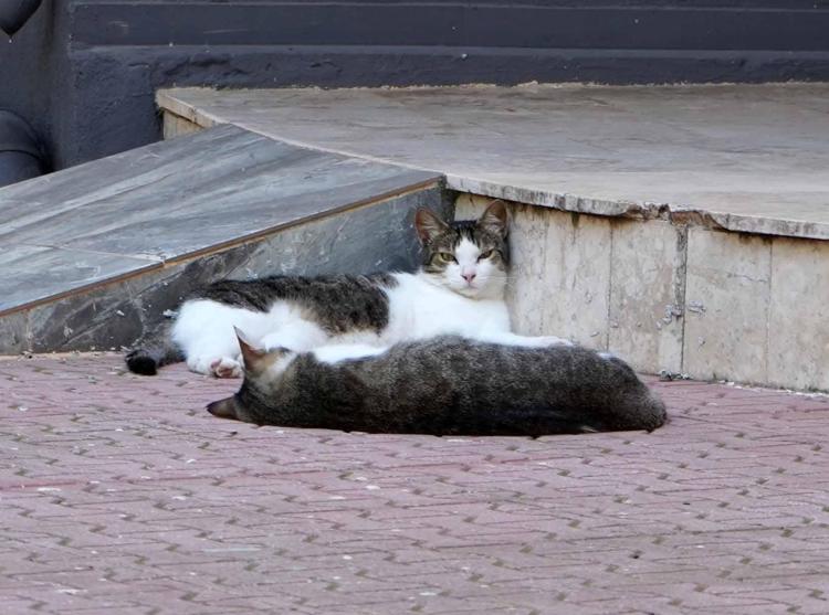 Etkisini gösteren yüksek sıcaklıklardan sokak hayvanları da olumsuz etkilendi. Hayvanlar bina dipleri, duvar kenarları gibi gölge alanlara sığınarak serinlemeye çalıştı.