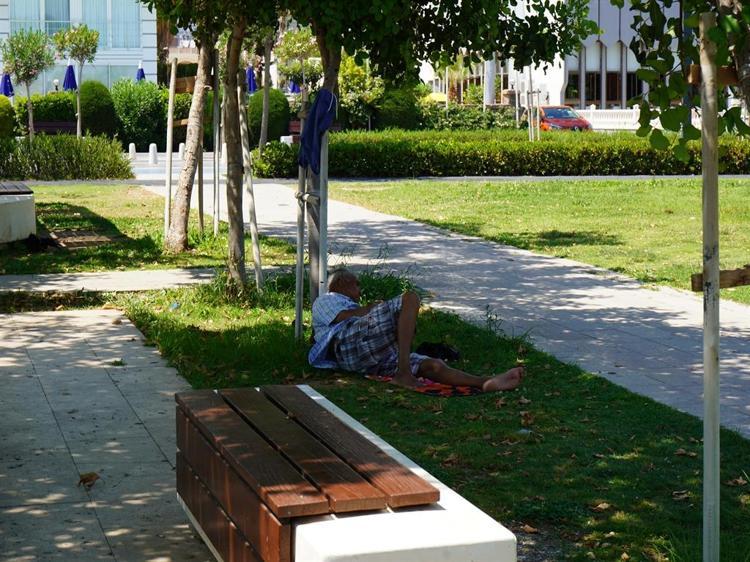 Sahile gelenlerden bazıları sıcak havaya rağmen voleybol oynarken, bazıları ise ağaç gölgelerinde yere uzanarak sıcaktan korunmaya çalıştı. Sıcak hava nedeniyle güneşli alanlar ve sokaklar boş kaldı.