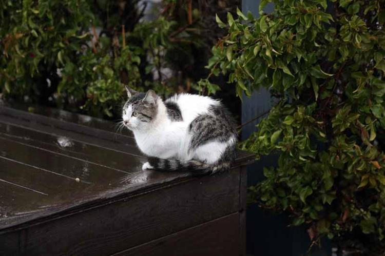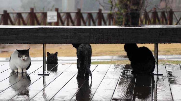 Olumsuz hava koşulları, sokak hayvanlarını da etkiledi. Yağmurdan korunmak isteyen kedi ve köpekler bina girişleri, kapalı otoparklar ve güvenli alanlara sığınarak yağışın dinmesini bekledi.