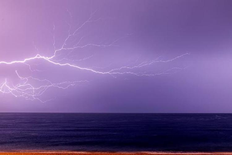 Yıldırım ve şimşekleri izlemek için yüzlerce kişi, yağmur ve fırtınaya rağmen sahile akın etti.