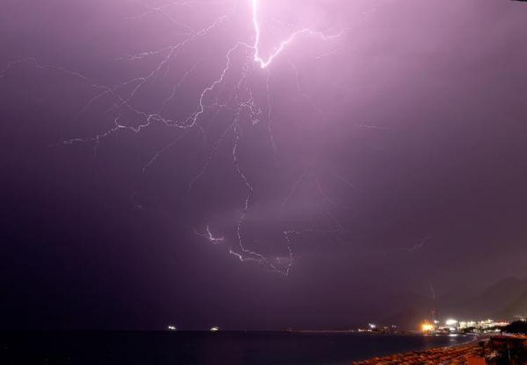 Antalya’da şimşekler ve yıldırımlar geceyi aydınlattı