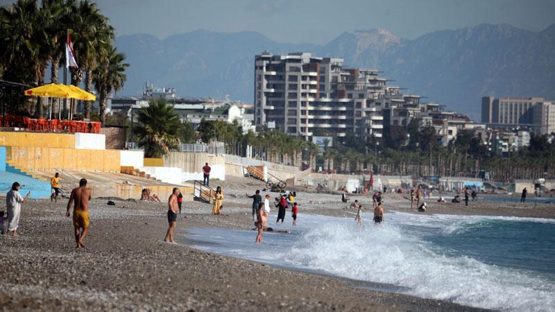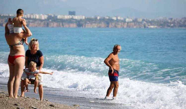 Antalya'da yerli ve yabancı tatilciler kasım ayında denizde yüzüp, sahilde güneşlendi.