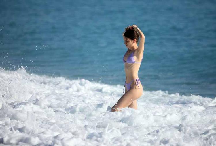 Çocuklarıyla sahile gelen yerleşik yabancılar da denizin ve pırıl pırıl Akdeniz güneşinin keyfini çıkardı.