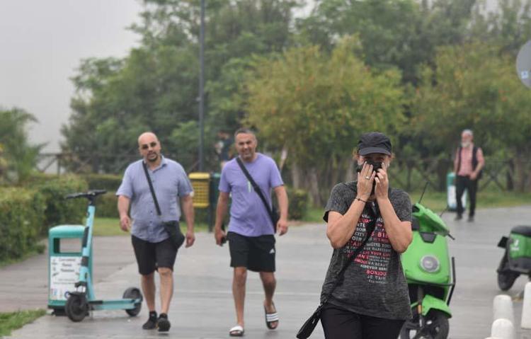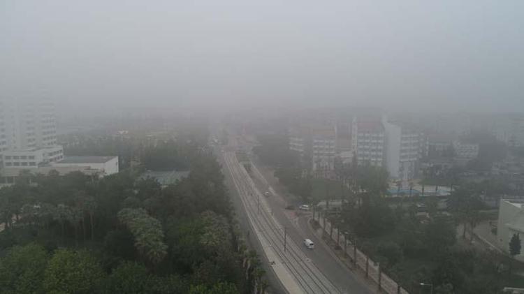 Caddede yürüyenlerin bazıları tozdan rahatsız olmamak için ağız ve burnunu kapatarak tedbir aldı. Meteoroloji verilerine göre, sis ve bulutlu havanın gün boyu kentte etkili olması bekleniyor.