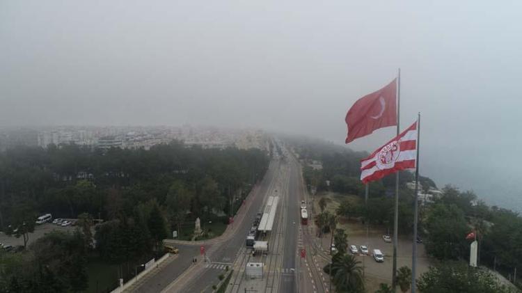 Antalya'da yüksek nem ve toz taşınımı nedeniyle sis oluştu, görüş mesafesi düştü