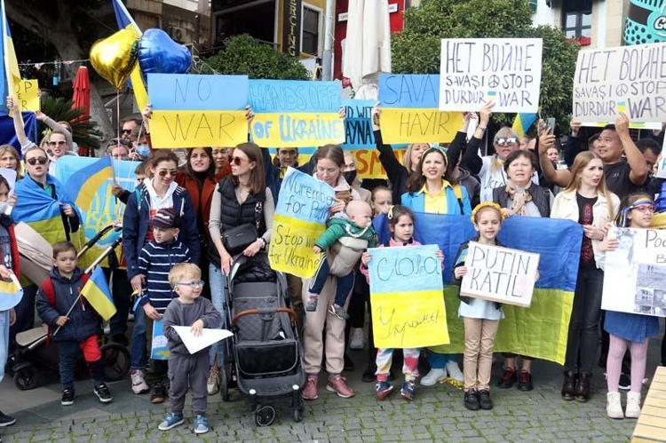 Antalya'da yaşayan Ukraynalılar, Rusya'nın Ukrayna'ya saldırısını protesto etti. Eylemde yapılan açıklamada, "Ukrayna'daki bu savaşın getireceği ölüm ve yıkımdan sadece Rusya sorumludur. Biz ve neslimiz, bu haksız işgal eyleminden dolayı destek veren hiç kimseyi asla affetmeyeceğiz. Tüm dünyayı bu anlamsız savaşı durdurmak için birleşmeye çağırıyoruz" denildi. İstanbul'da ise yaşayan Kırım Türkleri ve Ukraynalılar Beyazıt'ta toplanarak, Rusya'nın Ukrayna'ya saldırısını protesto etti.