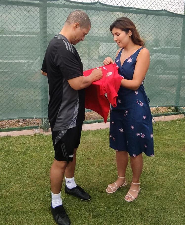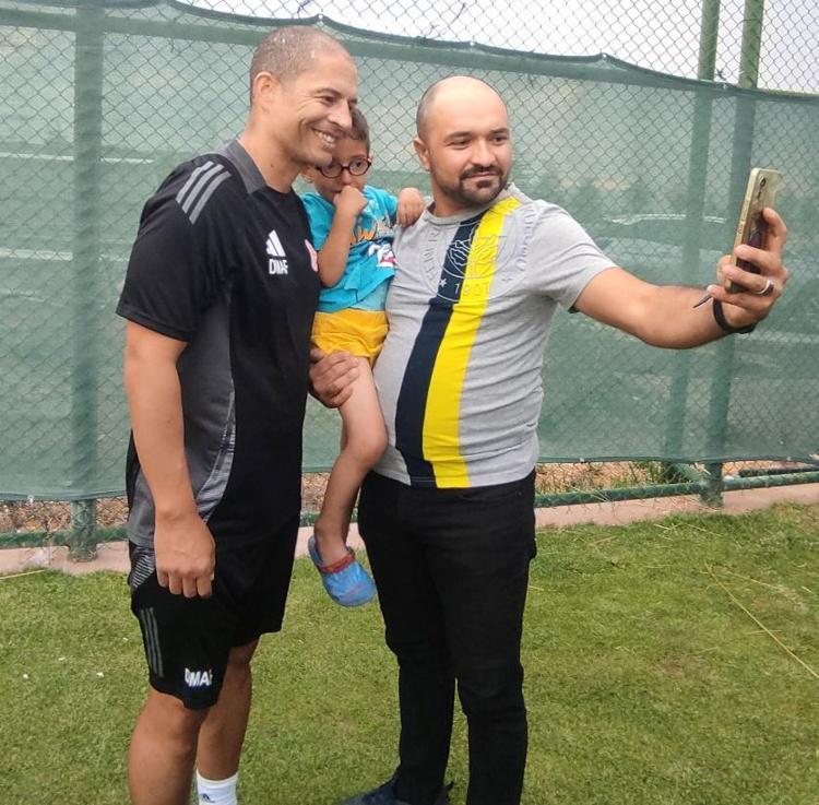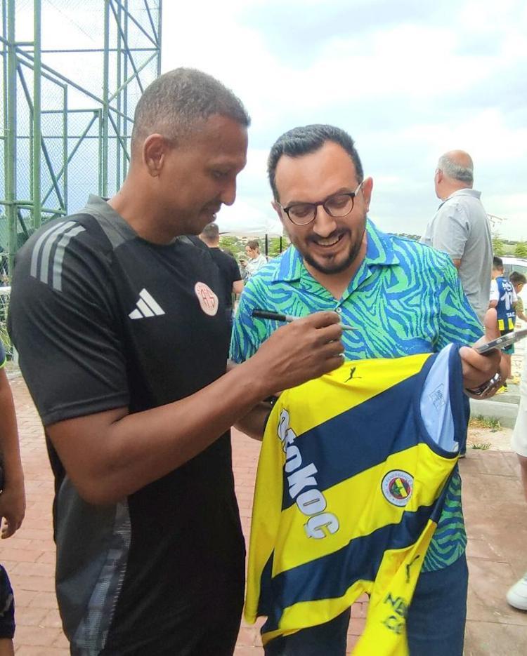 Burdur'un yanı sıra çevre il ve ilçelerden gelenler de Alex de Souza ve Mehmet Aurelio'ya Fenerbahçe ve Antalyaspor formaları imzalatıp hatıra fotoğrafı çektiriyor.