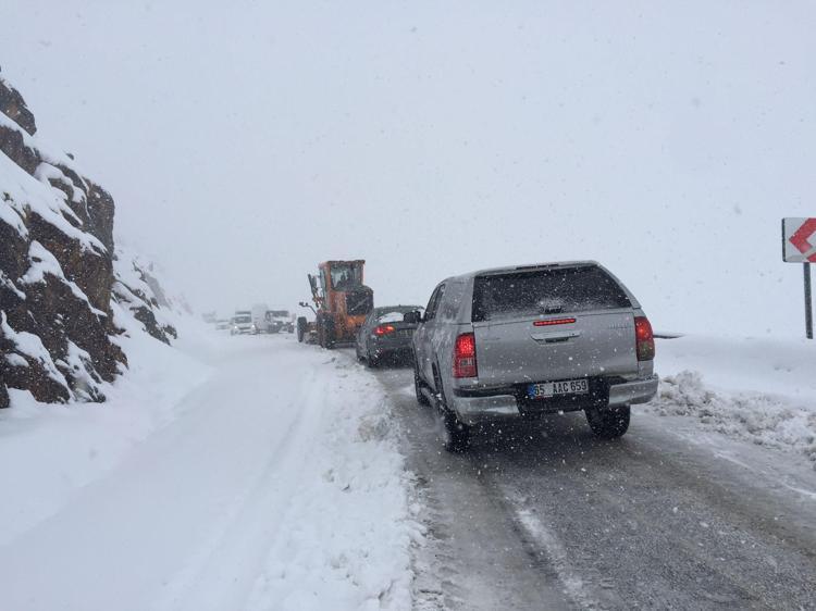 Yüksekova- Şemdinli kara yolu üzerindeki 2 bin 100 rakımlı Haruna Geçidi’nde çok sayıda araç buzlanma nedeniyle yolda kaldı.