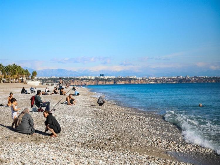 Geçen hafta sonu şiddetli yağış ve fırtınanın etkili olduğu Antalya'da, hafta başından itibaren güneş tekrar yüzünü göstermeye başladı. Yurt genelinde yağışlı ve soğuk hava etkili olurken, turizm kenti Antalya'da hava sıcaklıkları mevsim normalleri üzerinde seyrediyor. Hava sıcaklığının 22 dereceyi gördüğü kentte yaşayanlar, güneşli havayı görünce Konyaaltı Sahili'ne geldi. Sahile gelenlerin bazıları, sıcaklığı 21 derece olan denize girdi. Sahile gelenlerden bazıları da kumsalda uzanıp güneşlendi. Sahil bandında yürüyüş yapanlar da görüldü. Meteoroloji 4’üncü Bölge Müdürlüğü verilerine göre; kentte 5 gün boyunca hava sıcaklıklarının mevsim normalleri üzerinde seyretmesi bekleniyor. (DHA)