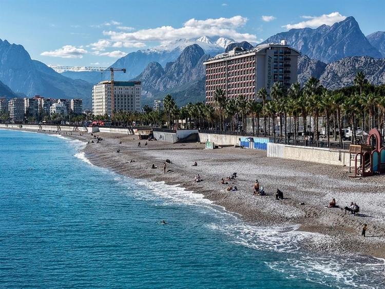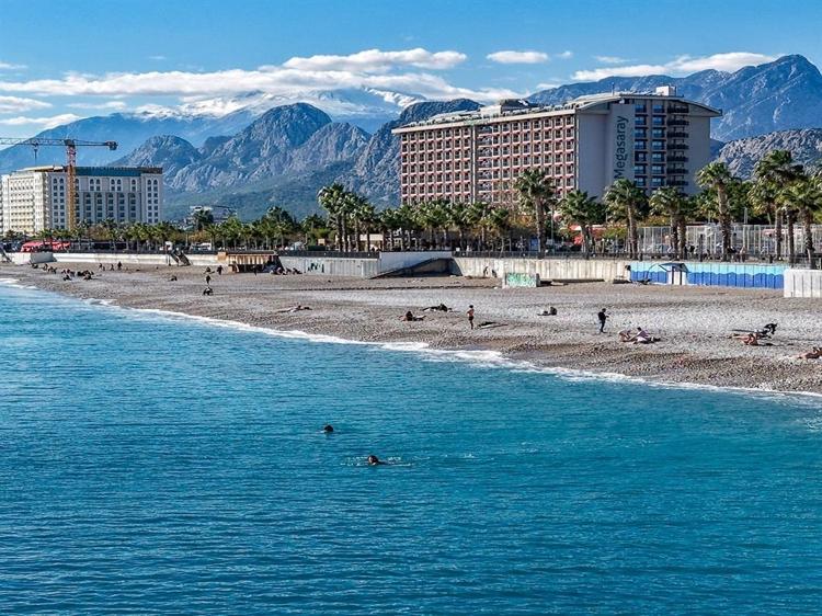 Antalya'da yaşayanlar, aralık ayında güneşli havayı görünce sahile geldi. Konyaaltı Sahili'ne gelenlerden bazıları, karlı dağların çevrelediği Akdeniz'in sularına girerken; bazıları da güneşlendi.
