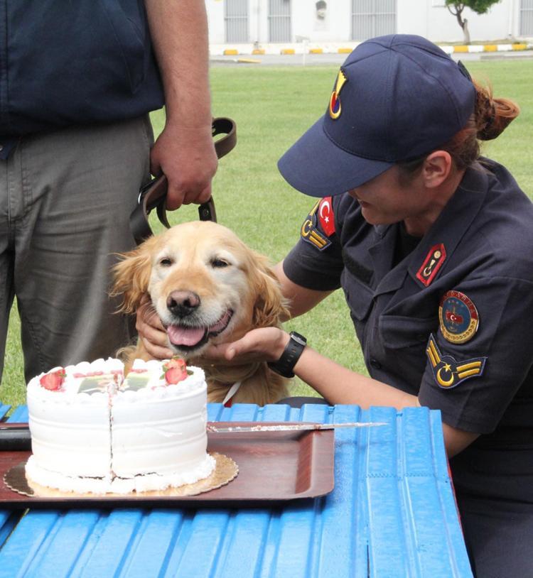 Arama kurtarma köpeği Bulut, yaş pasta kesilerek emekli edildi