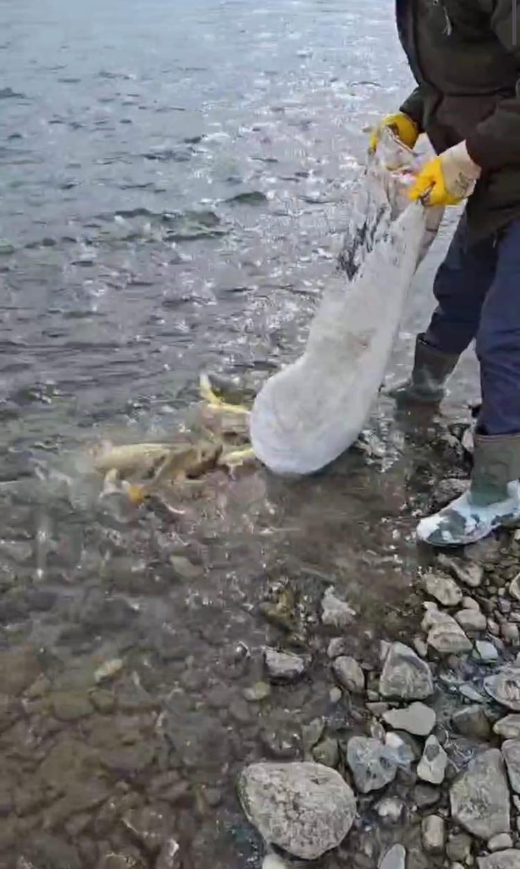 Köylüler, ölümlerin ilçe sınırları içerisinde kurulan 4 ayrı HES'in enerji üretmek amacıyla baraj kapaklarını kapatmaları sonucu gerçekleştiğini ileri sürdü. Aras Nehri'ndeki can çekişen balıkları çuvallara dolduranlar, suyun olduğu derelere götürdü.