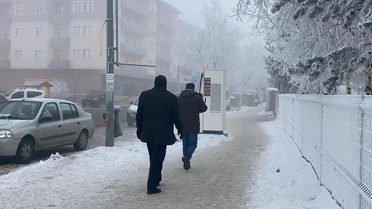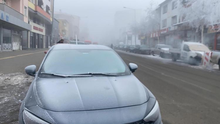 Hava sıcaklığının eksi 23 derece olduğu kent merkezinde soğuklar nedeniyle ağaçları kırağı kapladı, otomobiller dondu, çatılarda buz sarkıtları oluştu.