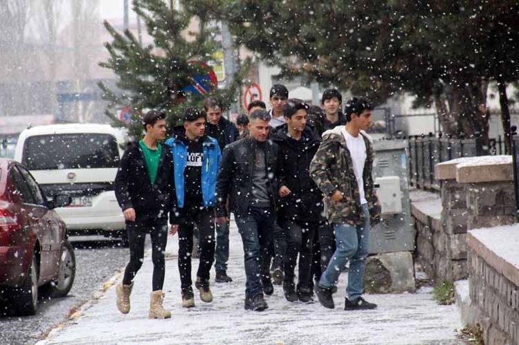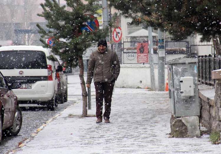Hava sıcaklığının sıfır derecenin altına düştüğü kent merkezine mevsimin ilk karı yağdı.