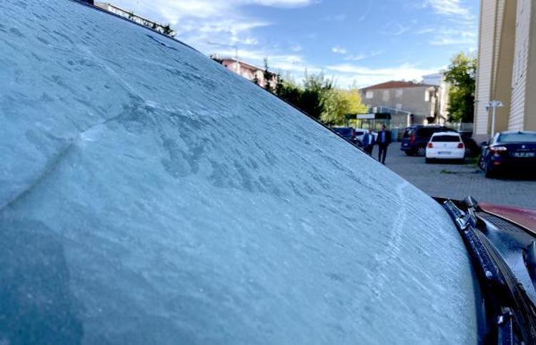 Ardahan’da sıcaklık eksiye düştü; bitkilerde kırağı oluştu, otomobil camları buz tuttu