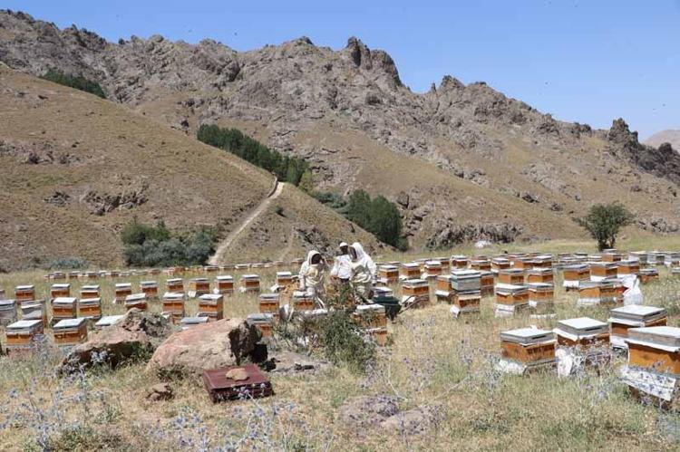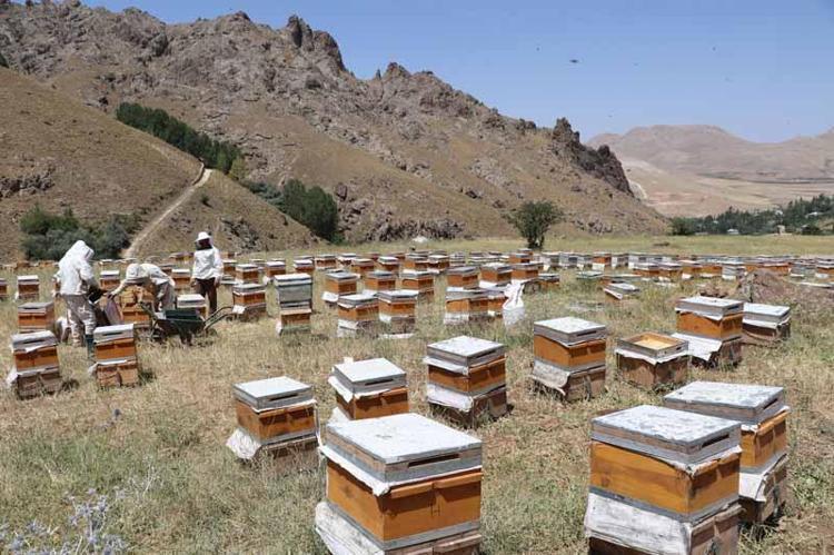 Van'ın İpekyolu ilçesindeki Erek Dağı'nın eteklerindeki Faruk suyu bölgesinde arıcılık yapanlar, verimden oldukça memnun olduklarını belirtti.