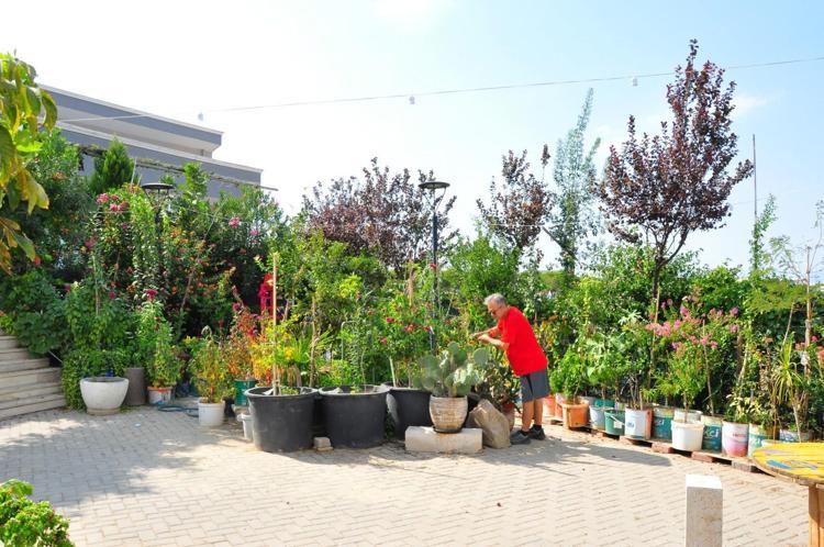 Manisa'da emekli Doktor Fahrettin Er (60), Şehzadeler ilçesindeki Sağlık Çarşısı'ndaki eczanelerin su arıtma cihazlarının atık sularını tek hortumda toplayarak, çarşısının arka sokağında kurduğu botanik bahçedeki bitkileri suluyor. 3 yıldır su arıtma cihazlarının atık sularıyla binlerce bitki ve ağaç yetiştiren Er, taşlık görüntüsüyle çölü andıran sokağı, yeşile çevirdi.