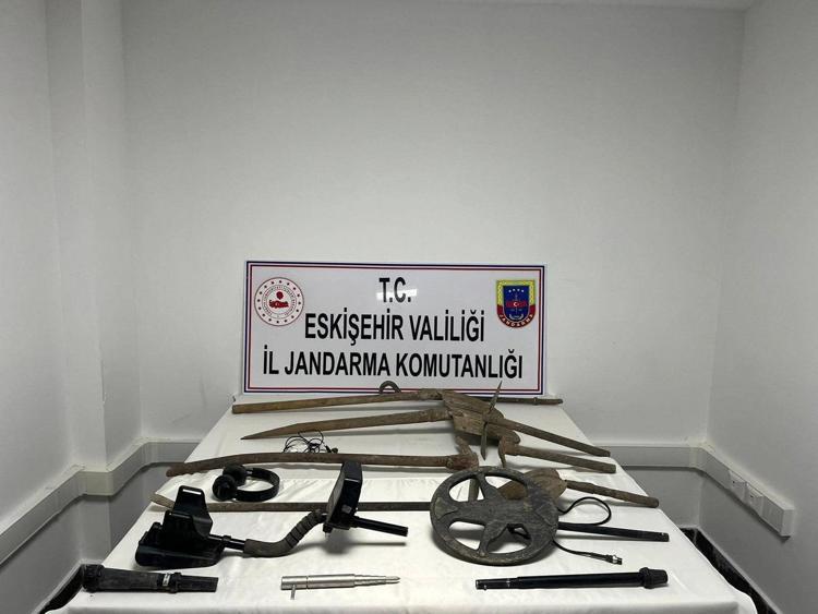 Bir süre izlenen 6 şüpheli, kazı yaparken suçüstü yakalanarak gözaltına aldı. Şüphelilerin yanındaki el detektörü, metal arama dedektörü, kulaklık, 2 manivela demiri, 2 kürek ve çeşitli kazı malzemelere el konuldu.