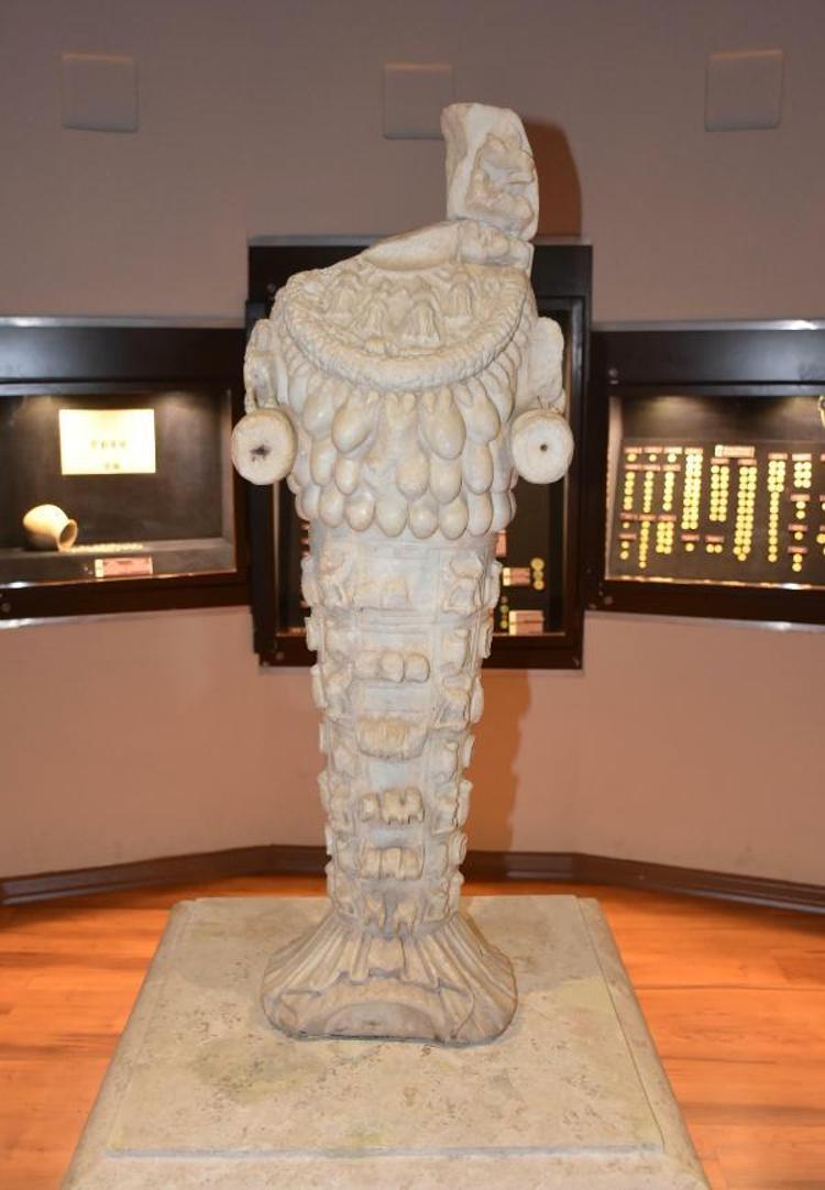 Heykelle ilgili bilgi veren İzmir Arkeoloji Müzesi Müdürü Cengiz Topal, "Mermerden yapılmış, baş ve elleri olmayan bir heykel. Kabartmalarında göğüs bölgesinde yumrular mevcut.