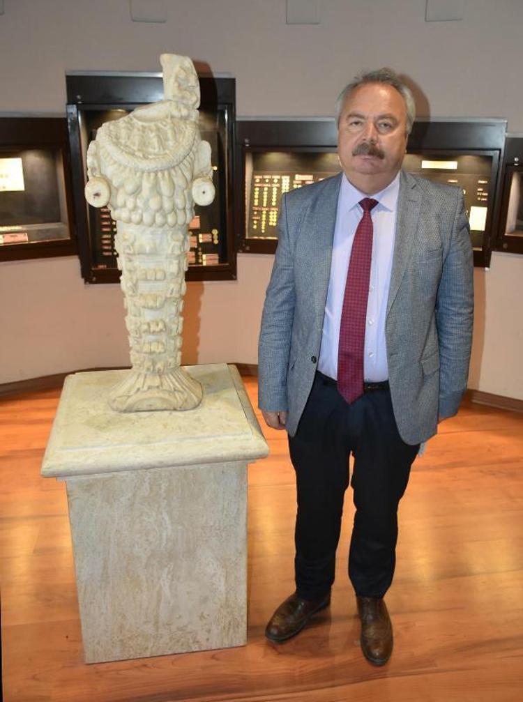Eteğinde boğa, arı ve bitkisel motifler var. 65 santimetre boyunda bir heykel. Kaidesindeki kalıntılardan muhtemelen yanında geyikler olduğunu anlıyoruz. Bunlar tipik 'Artemis' heykellerinde bulunan detaylardır" dedi.