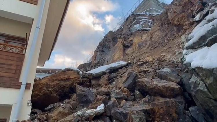 Artvin'in Yusufeli ilçesinde yamaçtan kopan taş ve kayalar 3 katlı binanın giriş katındaki evin içine girdi. Heyelanda yaralanan olmazken, pencere camları kırılan evde hasar oluştu.
