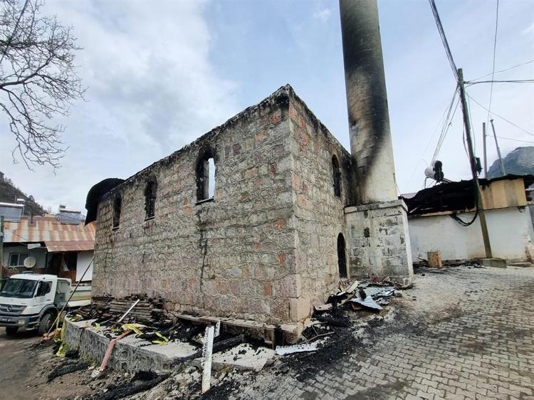Artvin'deki yangında camiden geriye duvarları ve minaresi kaldı
