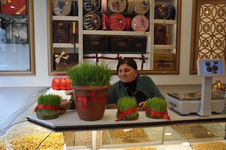 Babasının 24 yıl önce kurduğu işletmeyi devam ettirdiklerini belirten Şafak Demiral, "Semeni dediğimiz yeşil bitki, baharın gelişinin sembolüdür. Toprağın yeşermesi anlamına gelmektedir. Nevruz Bayramı'nda gelin honçaları hazırlanır, semeni de onların yanında hediye olarak verilir. Semeni honçasında yaş yemiş, kabuklu kuru yemişler, fındık, kaju, badem gibi 7 çeşit meyve bulunmaktadır. Fiyatları şu anda 1500 ile 2 bin 500 lira arasında. Geçen yıla göre, yüzde 100 bir artış bulunmaktadır" diye konuştu.