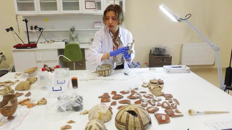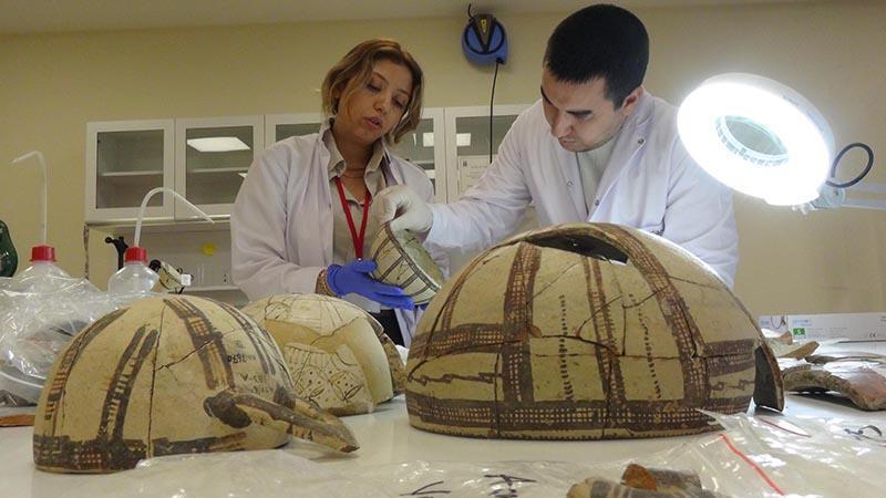 Bize düşen grupta 205 adet seramik ve cam eser yer aldı. Şu anda seramik ve cam eserlerin yapıştırma ve kaldırma işlemlerinin uygulamalarını yapıyoruz. Hatay'dan tasnif edilerek bize gönderilen eserlerin kırılan parçalarını bularak onları yeniden ayağa kaldırmaya çalışıyoruz.