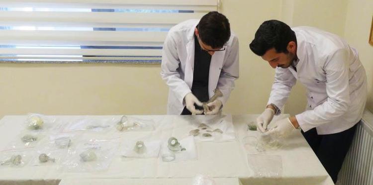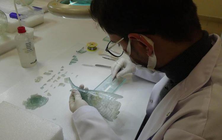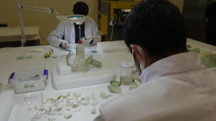 Rabia Genç, Muhammet Kırmaç, Erol Usman, Mete Efe Candar ve Ömür İmamoğlu'ndan oluşan uzman ekip, adeta samanlıkta iğne arar gibi parçaları aradı. Özellikle küçük parçalara ayrılan cam eserleri büyük bir dikkatle ayıran görevliler, eserlerin eksiklerini tamamladı.